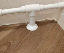 Способ монтажа: Обвод трубы одевается в обхват трубы, защелкивается и прижимается к полу.