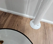 Способ монтажа: Обвод трубы одевается в обхват трубы, защелкивается и прижимается к полу. Если у вас трубы близко к стене, вы можете повернуть розетту узким краем к стене, и она у вас встанет на место.