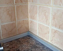 Способ монтажа: данный плинтус для столешницы состоит из двух частей - основания и декоративной части. Основание крепится к поверхности на жидкие гвозди или саморезы к стене или столешнице. Далее сверху надевается рифленая часть. Торцы оформляются при помощи специальной фурнитуры, подходящей под цвет плинтуса.